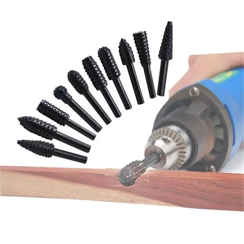 10PCS/Set Woodworking Electric Rotary File Wood Carving Tool Grinding Polishing Machine